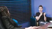 A mature brunette with a hairy pubis called a subordinate to scold him for his bad work, and as punishment ordered him to lick her pussy. The dude obediently obeyed the order, and then began to suck a dick in response. After oral caresses, the silicone milf finished with a squirt from masturbation, and then asked for anal slotting and re-reached orgasm.