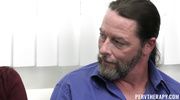 The stepdaughter dragged the man to an appointment with a psychologist so that she could help establish a relationship. In the process, the chick psychologist organized a real threesome and began to show the girl how to work properly with her mouth. After a deep blowjob, both sexy brunettes enjoyed a reciprocal cunnilingus, and only then abundantly finished from fear in the vagina.