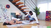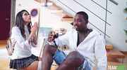 The girl came to a black friend's house to help prepare for the chemistry exam, and eventually began to breed him for interracial sex. Having achieved her goal, the chick got on her knees and began to suck the black bolt like a slut. After that, the cutie gave a pussy fuck in different poses and even allowed herself to be finished off.
