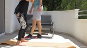 The coach decided not to miss the chance to fuck the athlete and right during the class gives her a hard cock to suck. A slender beauty with big tits begins to clink glasses with a man in different positions on the street. The faker farts a sporty blonde chick up to the balls in the fresh air and approaches the cumshot. The busty slut soon gets shots of thick sperm on her elastic and beautiful buffers.