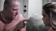 A pretty blonde showed her stepfather her charms and started a frank and dirty conversation with him. When the baby excited the bald man nowhere else, she spread her legs in front of him and gave him a pussy lick. In return, the libertine did a good job with her mouth and after oral caresses she gave a wet pussy to fuck all the way.