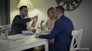 The dude brought a work colleague into the house and did not even think that an ordinary threesome dinner would end with his depraved chick. The blonde could not resist the temptation and, in order to really cum for the first time in a long time, she began to suck both men. Continuing to work with her mouth, the girl in stockings ran into anal and even double penetration.