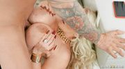 A mature blonde with silicone breasts aroused a young guy when she took off her extra clothes and even underwear. A MILF in black stockings forced the dude's cock to rise and began to please him with her mouth. Greedily sucking the bolt, the insatiable Alura Jensen took it deep into a narrow vagina, and when she finished, she treated herself to sperm.