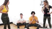 Two experienced beauties attacked their own stepsons and organized a real group sex. The bitches skillfully sucked the dudes, and they themselves got unrealistic pleasure from oral caresses. After that, the insatiable things simultaneously gave themselves into the caps and moaned loudly until they reached a stormy and bright orgasm.