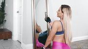 A blonde beauty in tight leggings had just returned from training and when she gave her neighbor a juicy ass to appreciate, she aroused him and ran into sex. The athlete gladly allowed the bald guy to lick her pussy, and when she pleased him with oral caresses in return, she gave herself into a pink pussy and finished abundantly.