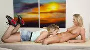 The blonde came to her friend for a massage, and she, as soon as she poured oil on her and caressed her a little with her hands, persuaded her to lesbian games. Then the cute bitches began to pamper each other with playful fingers, and then they began to lick sweet pussies and stopped only after both had finished abundantly.