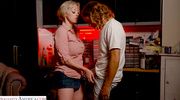 A MILF with big breasts asked her stepson to fix the bike and began to motivate him by showing off big artificial tits. The lady overdid it a little and, when she aroused the boy, she ran into sex right in the garage. The stepmom enjoyed sensual cunnilingus and instead sucked a dick, after which she got it deep into her cap and reached the final.